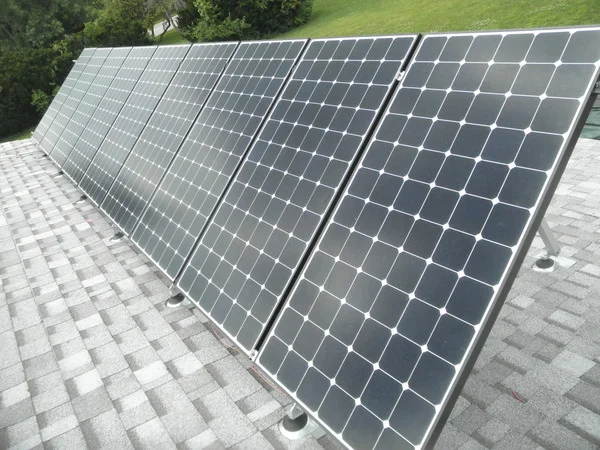 Purdue's Array on the Northside of the roof at 40 degree pitch (9 modules @238W = 2142w) as part of their 8.58 KW array.